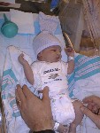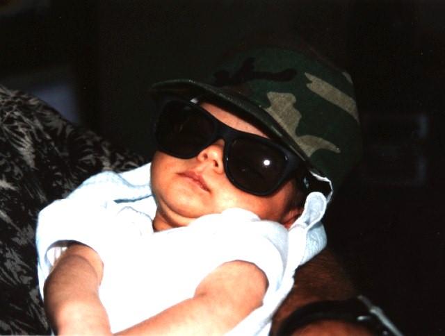 Well, I'm finally here!! 1st WeekHow time flies when you're having fun. I'm already 1 week old! What a great week it was. Grammy stayed with us until Thursday morning and then my Grandma Sue came on Thursday night. Da came Friday night and Aunt Sara came Saturday morning. Grandpappa and Grammy came back Saturday morning and brought Aunt Ann. She is really neat. Uncle Pierce didn't get to come because he hurt his back. Sorry, Uncle Pierce.Da and Grandma Sue took some more pictures, but haven't gotten them developed yet. There are some new pictures below, and Da will be putting more up as they come in, so keep checking. Everyone says I am a real good boy. My mommy and Daddy take real good care of me. I love them a lot because they change me when I need it, they feed me when I'm hungry and they take me outside. I really like being outside. They have even taken me to Olive Garden and Jason's Deli! 2nd WeekThis second week was a blur. My mommy and Daddy are definitely getting adjusted to me. I didn't even have any grandparents come to help this week. Anyway, there's not too much to report. My mommy says that I'm doing real good. There are quite a few new pictures, but they were all taken over a week ago. We'll get new ones up just as soon as my Da gets them. Gotta go and explore, so I'll see you later.UpdatesRather than doing week-by-week, my Da is just going to keep adding on. I'm 3 weeks old now and I already weigh 8 lbs. I'm getting close to being able to lift my head, and I'm really a squirmer! My umbilical cord dropped off last week and now I can take real baths.My Grandma Sue and Da came from Alice and my Aunt Debi came from Houston to visit this past weekend. We had a good time. We watched the basketball playoffs and I really like the Dallas Mavericks. I hope they win the championship! I had my two week checkup and everything was great. I don't go back to the doctor until I am 2 months old.... Hooray! Keep checking back for updates and I'll see you all soon. My mommy and Daddy took me to Ft. Worth to see Grammy and Pop while they went with Uncle Chris and Aunt Sara and some of their friends to a Texas Rangers game. I sure wanted to go! My Da and GrandmaSue came to see me this past weekend and we went to lots of places. We went to the mall, the Lazy-boy store and HEB! Wow, there were lots of people at the mall! As you can see from my pictures, I'm really growing. I can already turn myself over from my tummy to my back and I'm only 5 weeks old! Everyone says I'm very strong. The ladies at Grammy's Church gave me a shower and I got lots of neat things! My Great-grandmother, Ma was there and boy, do I like her. She has promised to spoil me, whatever that means! Grandma Sue, Da and Aunt Sara came for the 4th of July and we did lots of fun things. Daddy and Da cooked hamburgers and hot dogs and then we went to Ft. Hood and looked at all the neat Army equipment that my Daddy uses. Da, Daddy and I got to get in a Bradley Fighting Vehicle and Daddy showed us how it works. I wanted to shoot the 25mm gun, but there were no bullets. Daddy said that maybe I could do it when I got older. We went home and then went swimming at the motel. It was a fun day! We went to Schlitterbahn Water Park on August 16 and it was real fun. Daddy and Mommy took me down the slides and I liked it. We also went to San Antonio and visited the Alamo and went to the horse races at Retama Park. Everybody ate 50 cent hot dogs and I just drank milk. So many things have happened since I last updated my information. I got a tooth, and now I have 4 teeth! I started crawling a long time ago and now I'm standing and moving between furniture. I've had to get more vaccinations and that wasn't fun, but I've been real healthy. Christmas was fun and I got to visit with all my family. Now, I've got a new cousin, Mallory! She belongs to my Aunt Debi and Uncle Marcos who live in Houston. She's pretty cute and I can't wait until we can play together. Well, that's about all for now. You can click on each of the pictures to see a bigger picture of me!